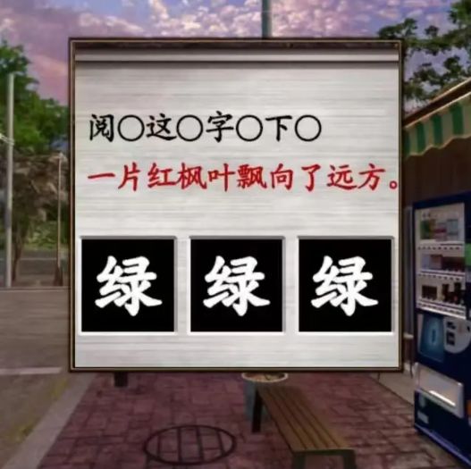 这关是直接是对着人行道的缝往下看“阅”对“的”“这”对“行”……再和箱子上的字连在一起是“阅的这行字读下方”,正确的语序不应该是“阅读这行字的下方”吗?我通关的大概用的时间也有1个多小时了,但是这里显示我才玩了2分钟,重启TapTap也还是2分钟……