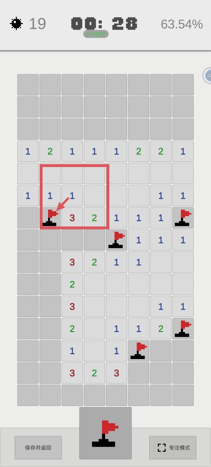 彩字3右侧的2的作用域中还有一个未知的雷,在彩字2或3中,因此对于彩字2右侧的2来说,彩字1必定存在一个雷。
