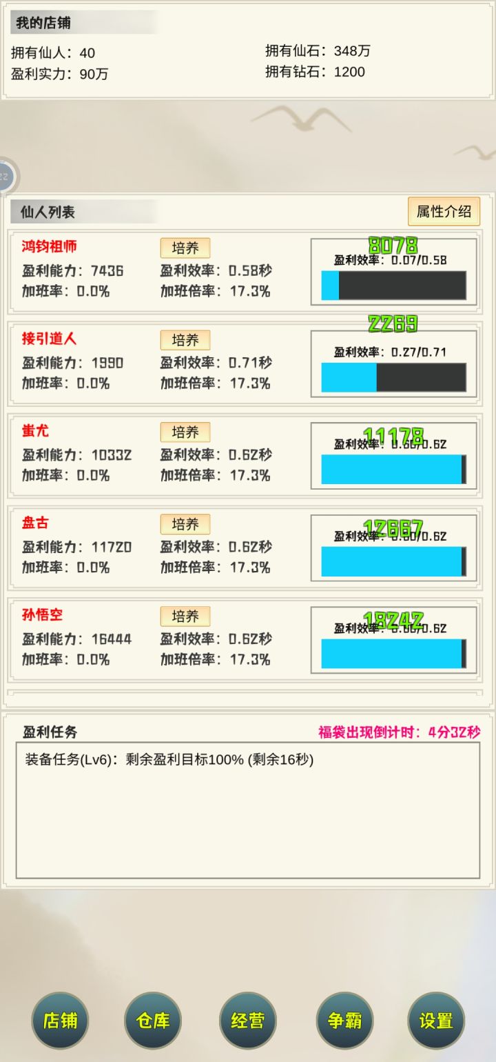 小知识:1.每次渡劫所需要的总花费是升到2级数量✖️25w倍,例如升到2级需要2w仙石,则升到1000级需要50亿仙石。2.淬炼等级最高为300级,后期提升很大,升到300级大概要60-80万万亿(具体没记,后面可以测一下数值)3.超级大赛最多为6层,大概7级装备的满仙灵套就能通过(需要魔化以及升华10),需要将仙灵套依次装备给每个BOSS羁绊1的英雄即可。4.装备中最强属性为6件仙灵套装