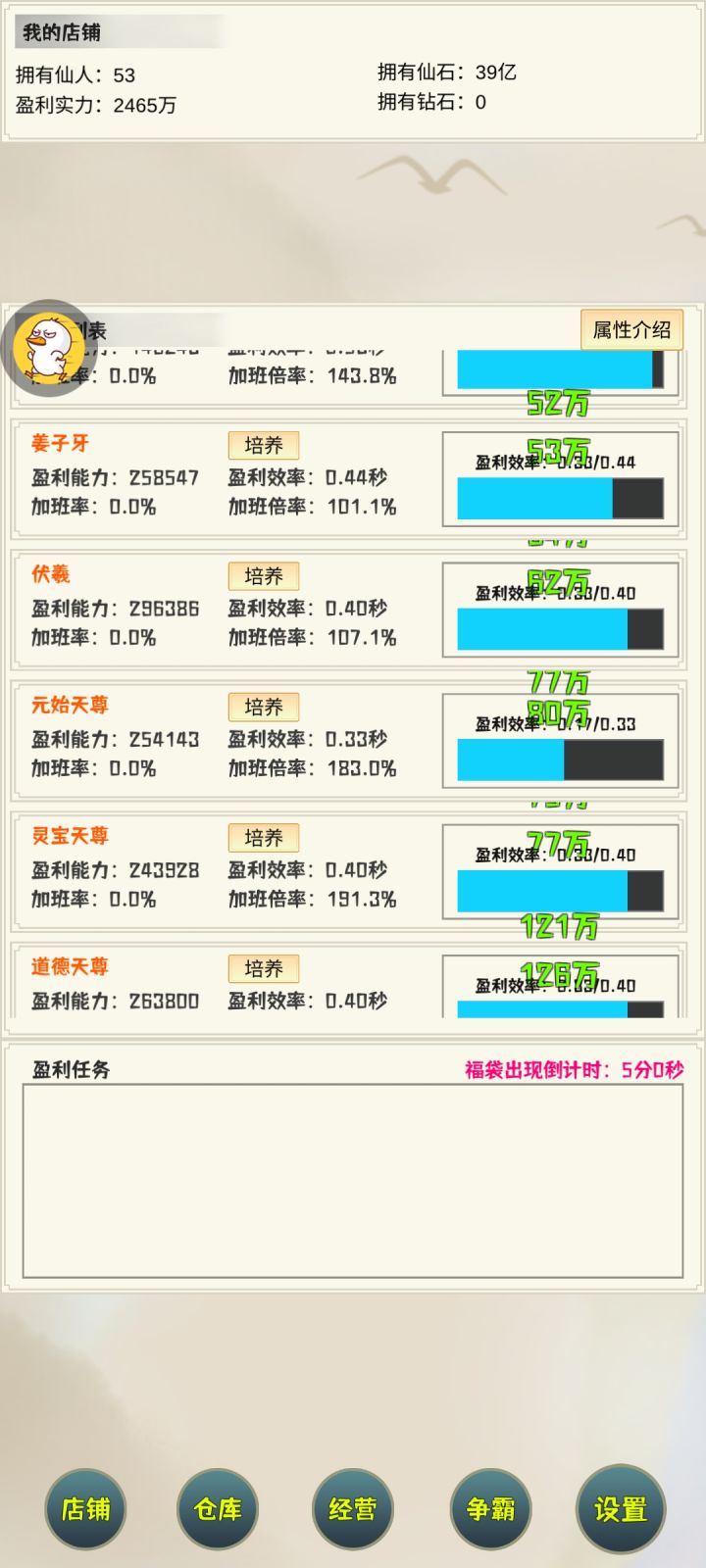 1~开局 : 优先拉满一个绿角色,装备都给他,在能一次升满一个红角色前(25w倍),蓝绿角色收益会更高。2~任务 : 这游戏的任务是看你的分钟收益,而且任务很难获取,前期1-2w收益应该能完成第一档的普通任务。装备任务看左上角收益,1.1K收益过2级,后期7级要1.1E,8级5E,9级12-13E。3~角色 : 目前来说,初始收益频率越低的角色越好。其次看技能,技能自带100%收益加成的属于必