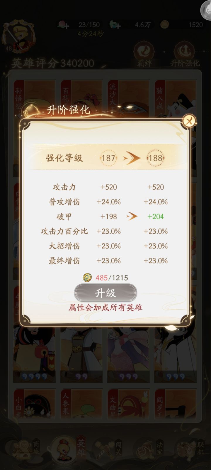 对于萌新来说对这个游戏充满了未知,不知道怎么玩或者收益最大化,由我这个踩过坑的开服玩家给大家分析一下。 人物招募:招募获得重复人物可进行升阶,进阶会给人物加技能等级,升阶会获得对应的强化点可进行升阶强化,攻击力提升很显著。获得指定人物可结束羁绊,羁绊可对全人物加成。人物最高等阶十八阶,多出的会自动转化轮回币。 法宝招募:招募重复的法宝可提升法宝属性,其中最终增伤,法宝攻击百分比提升最大,法宝可