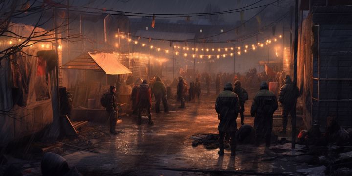 9月3日,酸雨,心情一般昨天晚上“它们”又来了,这次我们损失较大。好在撑到了天亮,“它们”才逐渐退到海里。去老街的搜索组今天早上7点多回到了超市营地,很幸运他们找到了一些罐头跟压缩饼干。超市的货已经不多了,需要再让他们去东区那边看看。这是个危险的工作。今天小铃应该会来,她委托我的抗生素已经找到了。好了,先写到这,很快就会有顾客来了。希望能顺利渡过今天……(图片由midjourn