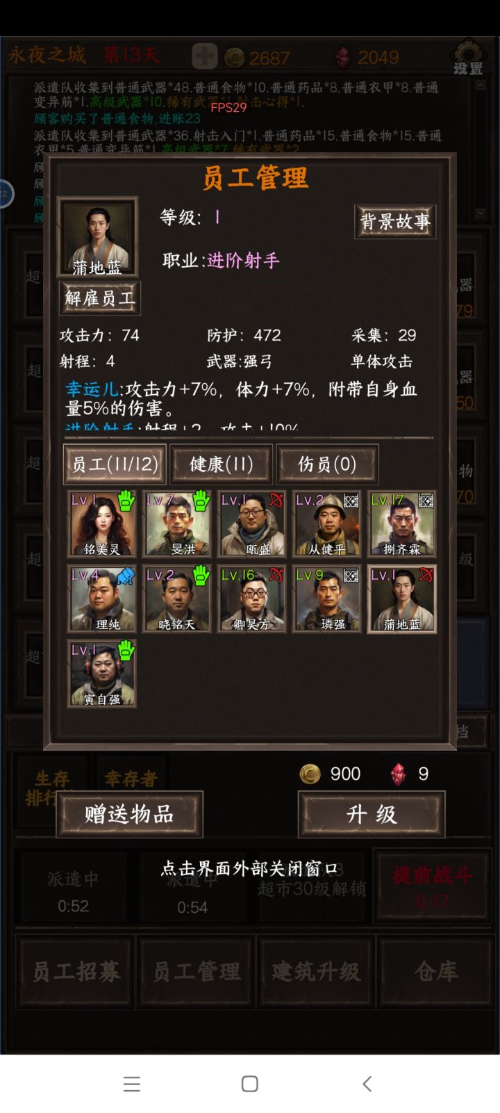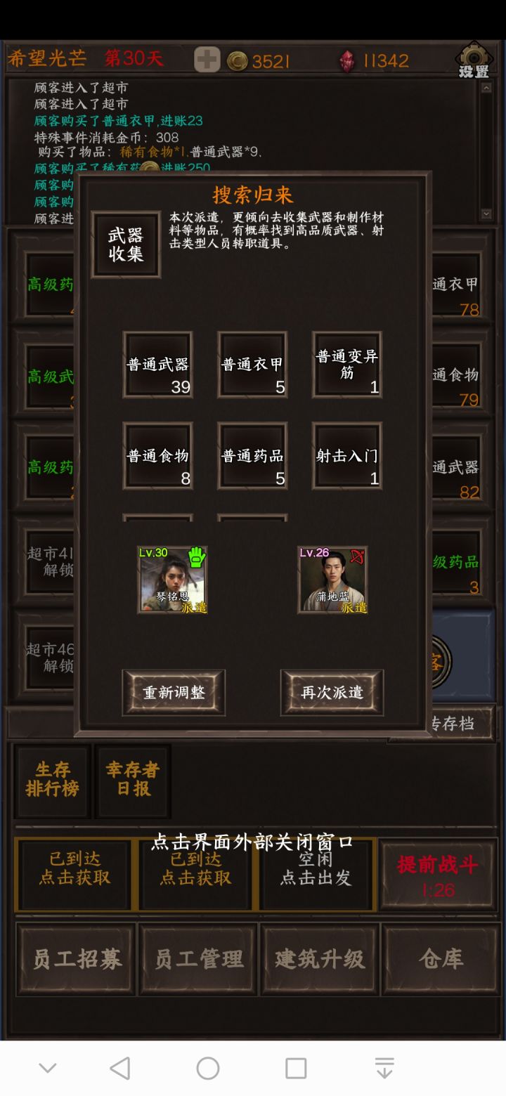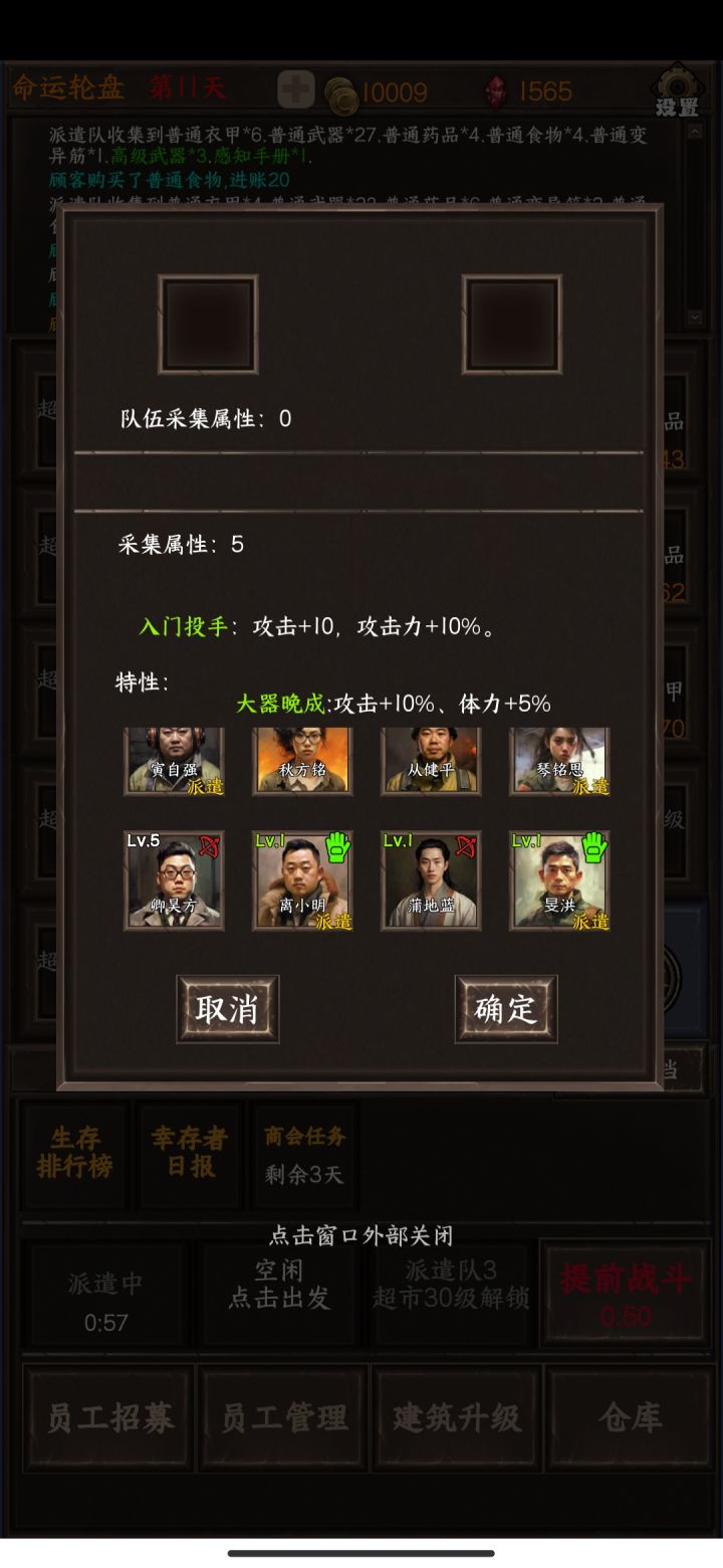 为什么送礼物?他不仅加攻击,还附带加收集啊?整的我要搜索物资,一键上阵老是换来换去的,我要培养一个能手,但要是给他派去搜索物资的话,我拿什么来打怪呀?还有啊,搜索物资完后再次派遣,他就又把那个那个最高的战斗的人物换上来了,我又得把它放下来