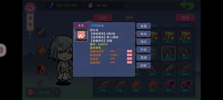 先说装备怎么获得,进入游戏会送10级,50级的基础装备,普通装备可以升级成高级装备,做抓鬼任务可以出玲珑装备,圣装目前开商城30仙石一个的珍惜物品箱子几率获得“仙石看广告获得,每天固定30个广告,仙石不能充值获得,没有充值入口”普通装备可以升级到高级装备,最多5级也就是最高3转配戴,圣装则没有等级限制普通装备升级高级装备需要任何意一件普通装备加,冰火晶“这里注意武器升级要100万灵石其他部位5