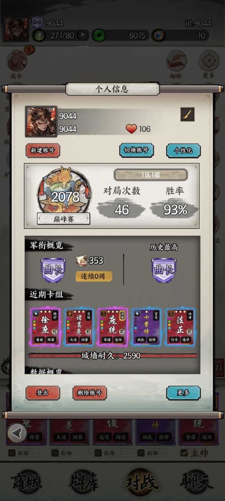 原来一区胜率90,法正削了打了几局胜率93😏都是尽力卡的真人