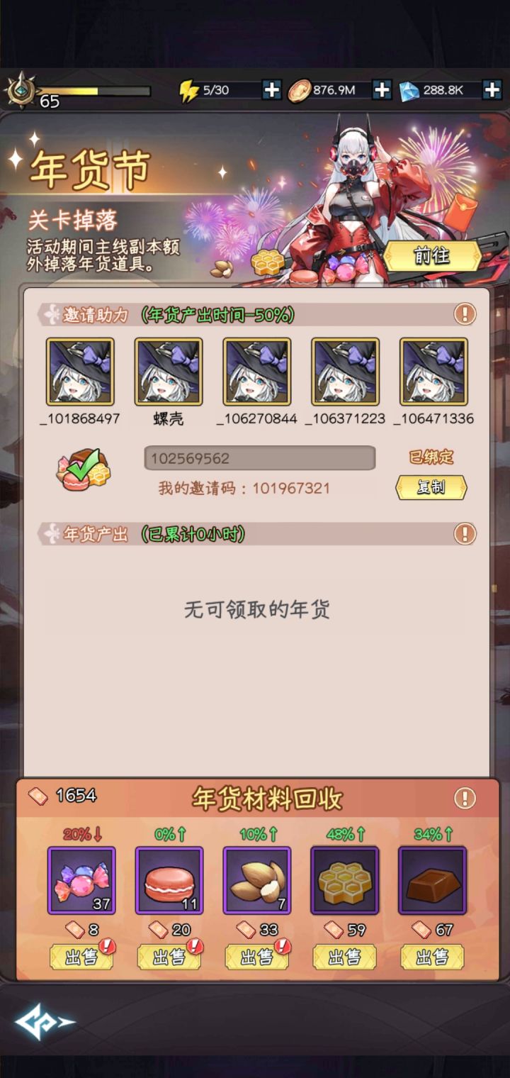 年货节:只有糖果和巧克力有上浮50%,中间三个最高45% 47% 48%。糖果 卖了614个共计9194分,剩下37个懒得卖留给策划吃饼干 卖了530个共计15318分,剩11个。坚果 卖了412个共计18128分,剩7个。蜂蜜 卖了325个共计19715分。巧克力 卖了373个共计27487分。合计89839分,其中,年兽和财神商店22200分,年货节本身67639分
