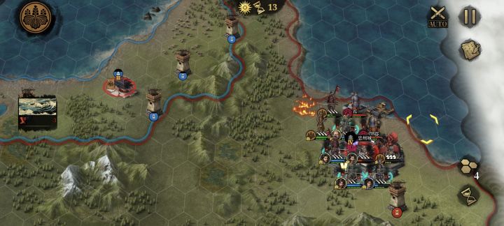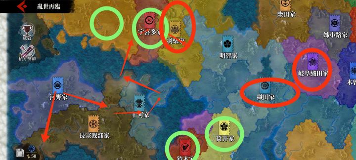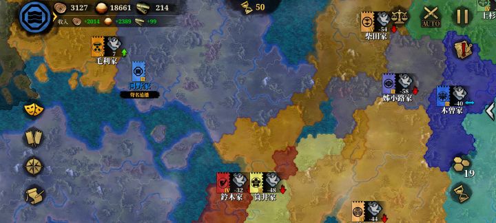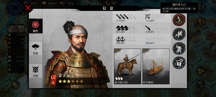 边角的势力都挺容易打的,特别是在四国岛的河野家,非常的棒,因为送的一个武将【金子元宅】技能和【岛津义久】的一样都是【强行军】,相当于开局自带一个【岛津义久】