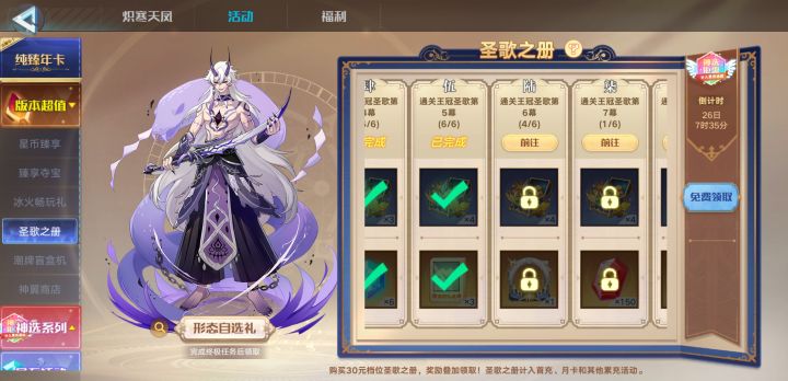 这次活动真的离谱,断肠超进化搞得那么难,新玩家怎么可能打得过?难就算了,我可以不要那个超进化,最过分的是把那个断肠超进化跟圣歌之册直接就绑在了一起,打不过超进化,后面的所有的奖励都拿不到,这30块钱直接白充,直接不要新玩家玩呗