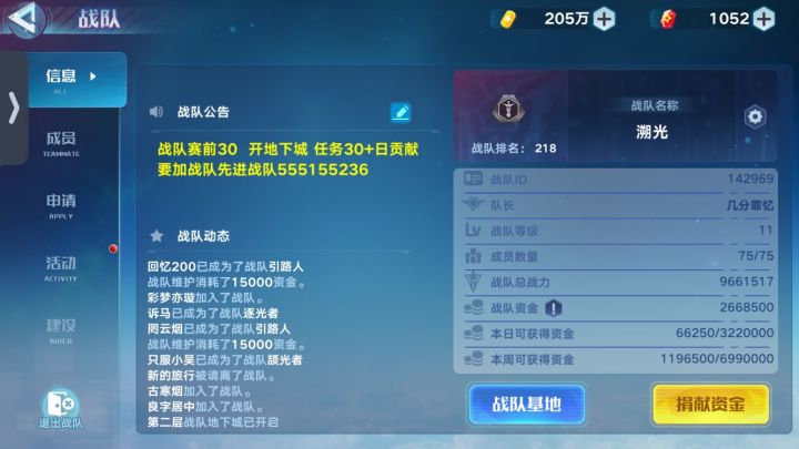 是否感觉你现在的战队热度低,觉得你现在战队是和尚院如果你有这样的感觉,那就请来溯光,里面有小姐姐和你一起互动,有游戏大佬为你排忧解惑溯光溯光,顾名思义,肃清光棍如果有意加入,就请入群555155236