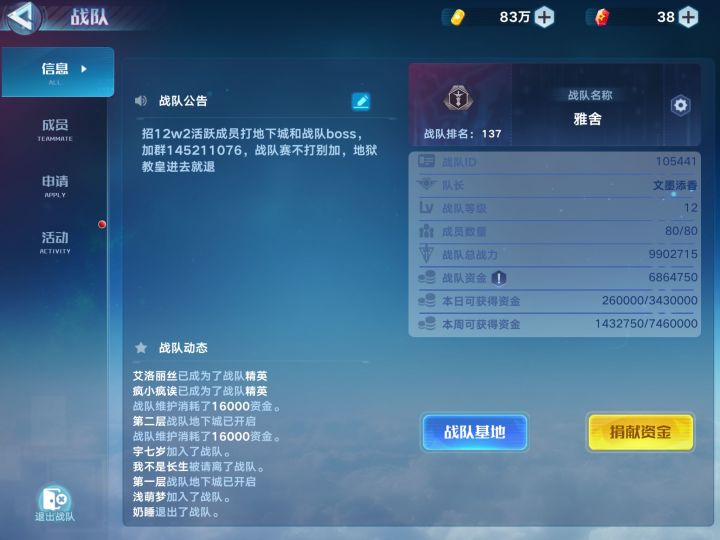 12级战队收12w2活跃玩家,地下城和战队赛必打,每周周五开地下城,战队赛前五十,有意向的童鞋dd哦