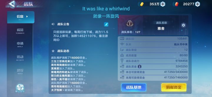 战队现收活跃玩家,战力不限;地下城第四层已通关,每周两层地下城,有需要的朋友先加公告群号方便联系