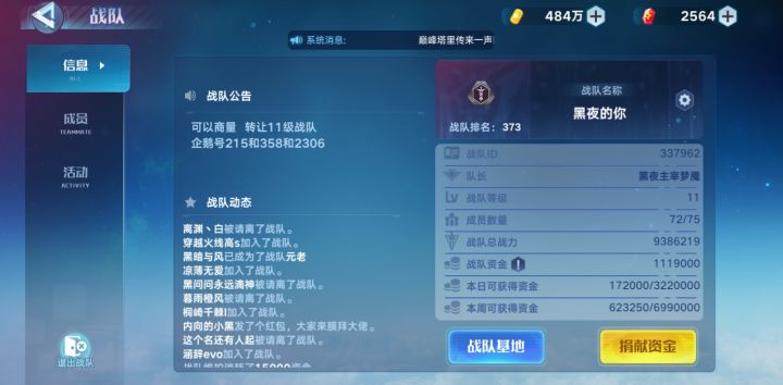 战队名称:葬訫战队等级:9级招募:战队管理人员、战队成员战队QQ群:963846792进战队的先加群注:不要求战力,只要求能长期在线就可,只要能把战队打理的井井有条,可以给出队长位置,期待您的加入(队长要同时管理多个战队,打理不过来)。
