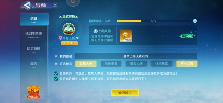 收徒收徒。能玩的都玩的差不多了,现在纯养老仓鼠一只,所以想提高提高导师等级,有意者加我QQ1243088508在游戏中有什么疑问都可以问我哟,我会尽我可能的帮你们避雷的。