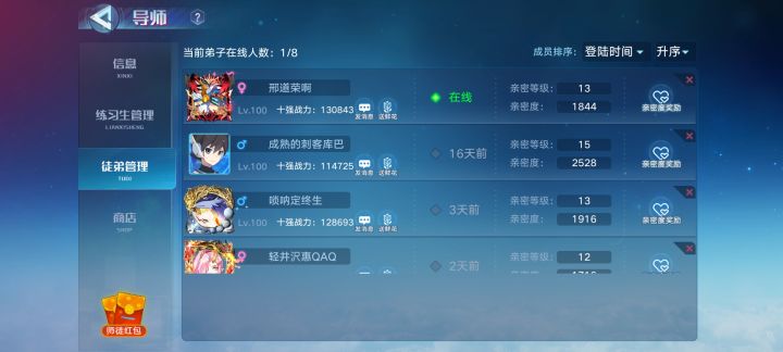 收徒!收徒!!收徒!!!收4个徒弟,有想拜师的可以联系我带所有能带的副本,解答所有不懂的疑问,有意向的萌新或者回归玩家都可以,但是那种玩几天就离开的还请勿扰游戏ID:8080995游戏名称:可否给枝花本人Q:2824213141