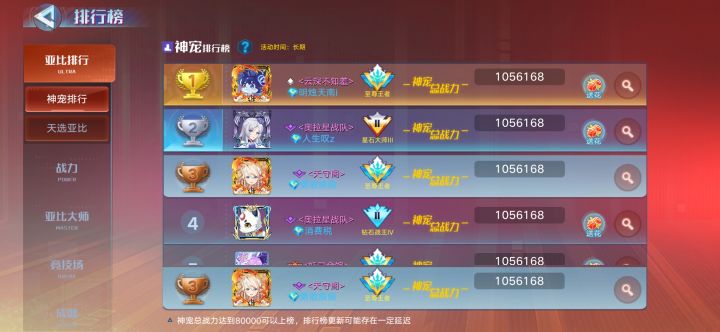 嚯嚯嚯萌新终于有战力排名啦