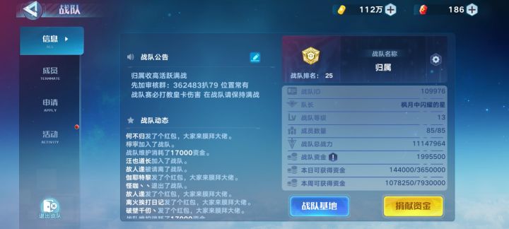 ‘‘奥拉星’’金榜在榜战队‘‘归属’’欢迎各路满战活跃大神加入(不养老),战队在乾坤赛季中荣获战队赛第11名,战队赛稳前20有机会进前十,每周开地下城,节日会瓜分红包。战队也有小姐姐,希望各路大神在每个赛季都能保持满战和活跃。战队根据贡献与活跃给予精英等地位,申请当管理可以根据贡献和活跃有机会获取有权限的地位,但会被分布到每个不同的管理层中管理相关事情。‘‘归属’’目前稳在金榜,欢迎各路满战大神加入。申请战队+QQ审核群。