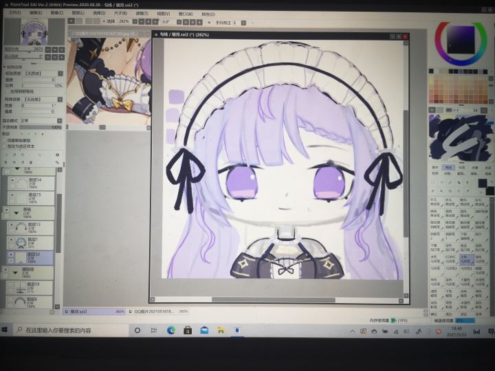 感觉和昨天没有什么变化,我又调了一个新的色卡,看起来效果一般,调整了头饰部分,大体确定了部分颜色的走向,嗯,革命仍需要继续灵感都要枯竭了,有没有人能配置一个新的色卡呀,孩子真的不会紫色系,孩子已经迷茫了,我画的应该还是银河小姐吧(● — ●),还是得稍微想一想银河小姐的突出特征,要不然就越来越奇怪了。