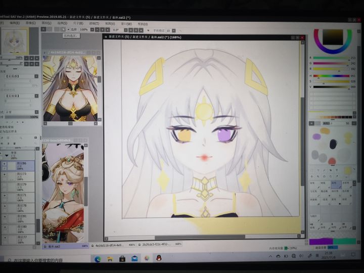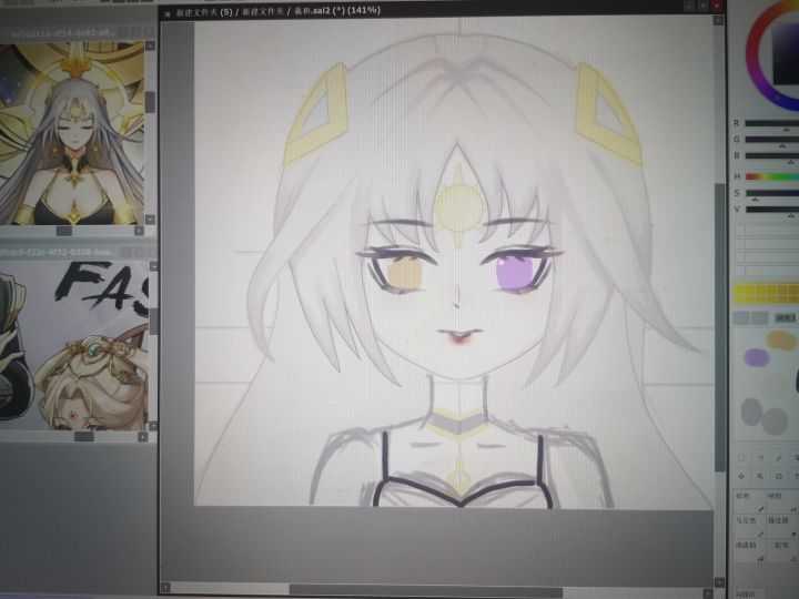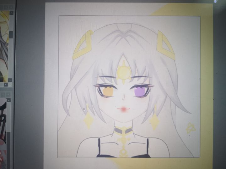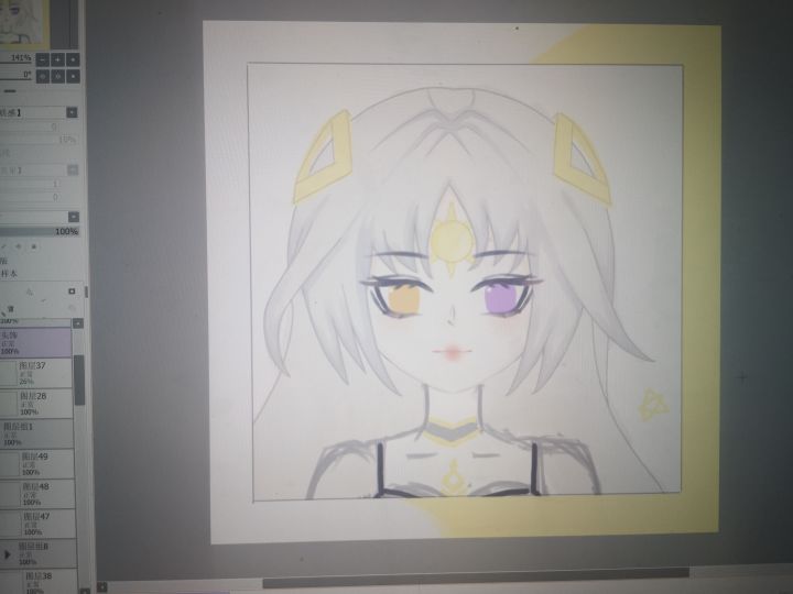 我感觉还是红唇适合羲和,明天再调整一下吧,明天可以尝试把他的饰品画的多一点,然后再简单调整一下发丝,感觉还是挺有难度的,今天微调了一波,差不多了,嘻嘻*^_^*这个脖子看起来还是好尴尬,但是我是真的不会,到时候微调看看吧,实在不行把饰品画的亮一点,把背景画的好一点,分散一下注意力,唉,我啥时候能跑路啊这根本就不是人(只有我)干的事。。。。