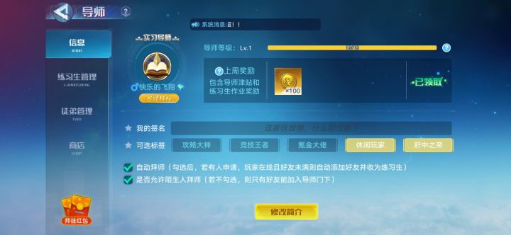 找徒弟,有没有来当我徒弟的,“我就搞不懂了,为啥就没有个找徒弟的专属界面,给我们这些师傅可以自行找徒弟。我就想要个皮肤而已😓”开服老玩家,带徒弟飞,不过我不怎么打竞技场,有想来的就可以直接游戏里面申请😊😊