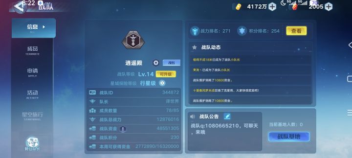 战队逍遥殿诚邀各位大佬,萌新来加入战队。我们战队对战力要求没有任何限制,萌新可以来战队发展,大佬可以来战队养老,也不会强制大家肝任务,尽力而为就好。战队排名比较低,有意加入的可以加q群1080665210,随时欢迎加入