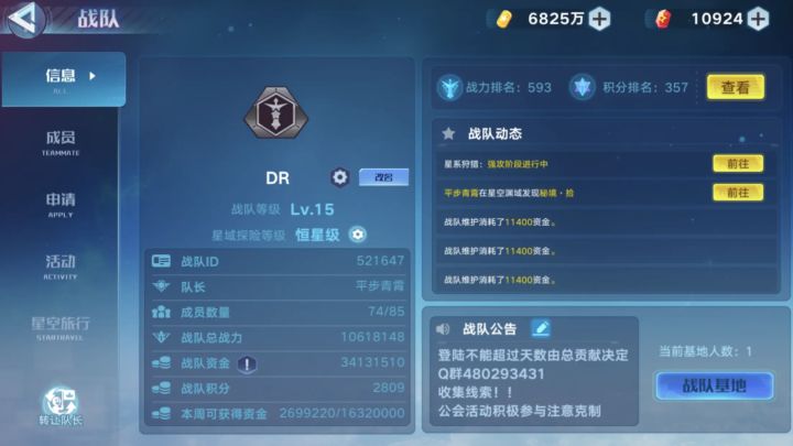 开服老牌战队焦糖玛奇朵诚招活跃玩家组一辈子战队()不限战力仅要求登录频率本战队为开服牢战队()在多次战队赛取得名次,战队积分保持金/银标,队内氛围好,可以互助讨论游戏相关问题,也可以聊一些日常话题,队长好说话,大家都是朋友氛围很好,战队人员组成相对稳定,仍有部分开服老队员活跃。战队氛围比较轻松,可肝可摆,保持登录频率即可。战队不会因为要求战力或强制打战队活动踢人,狩猎和虫洞等活动开放会在群里公