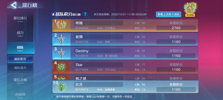 玖月战队招人战力14W以上的小奥拉们感兴趣的可以加战队。