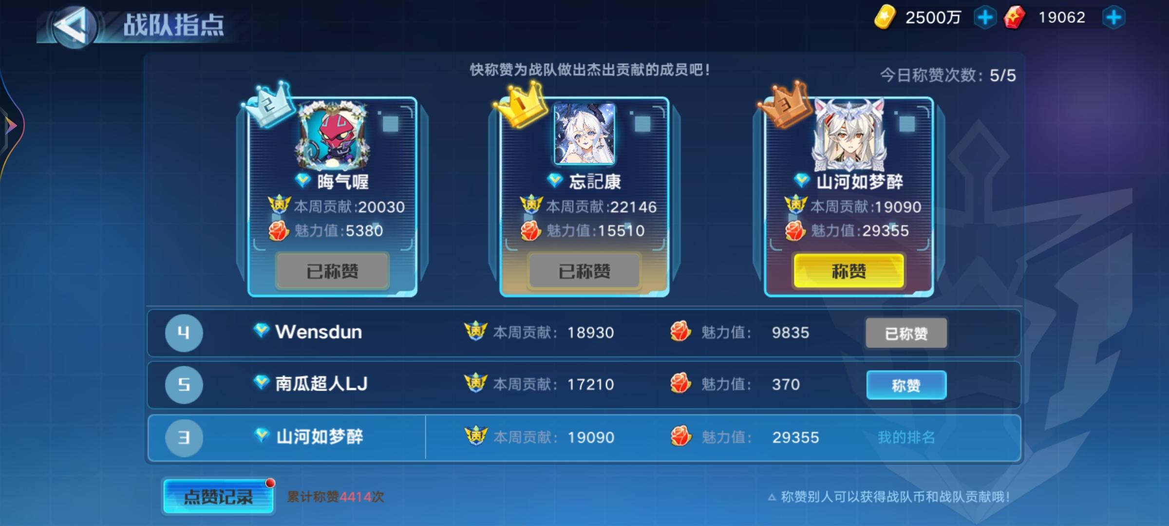 跟大部分战队一样,战队佛系了半年多,半年来什么东西都是没排名,没榜现诚招一个满战神宠百万管理有配置无偿上钻,现已打三个战队福利这边跟大战队确实没法比,但极星令,2个月蓝宝石已备好简单说明一下目前战队情况:已经历过大换血,目前三天及以上未上线10人,现如今嘎嘎活跃,战队更新过刷本什么的不会太慢哦!什么战队亚比保证可以获得的呦!另外,本战队贯彻保持中立的原则,不与任何战队结盟,也不隶属于任