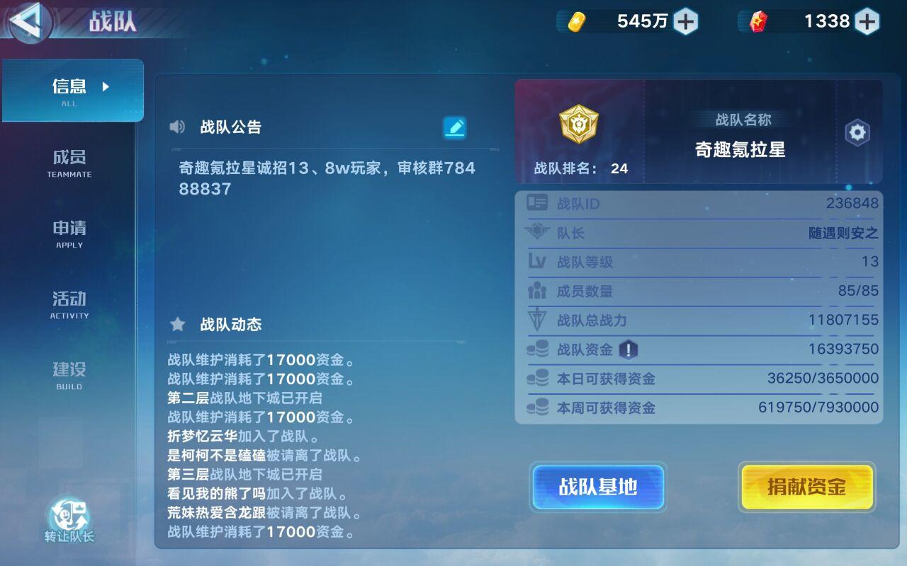 战队收人,每周打2~3层地下城。 战队招13.8w以上的,有意加q群:680936758 群活跃可以聊天😍
