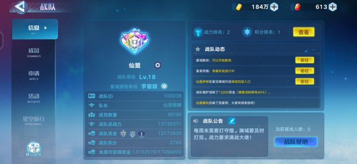 ※战队有相当一大批的热心大佬,会提供各种各样的攻略和玩法推荐,会耐心给其他玩家提出合理的意见和建议,有和谐的交流氛围,大佬包括多次抢占各挑战榜一的猪猪(P4)、最后一次无充值渠道全员内测总榜榜一(未截图)