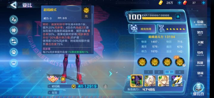 辅助能力基本在象限上,1234都是相当不错的辅助能力,大招的翻倍效果更是再一次放大辅助能力:40伤害能力下降,60伤害抗性下降,20掉血(达到上限就是3000+掉血),每回合-4属性。通过3技能群体调整,1技能的个别调整,可以使每个目标都处于需要的象限中。但是几乎每个技能都会改变象限(2技能是否重置象限未知,即使是技能pp也不足),也就是说可能不能长期稳定。