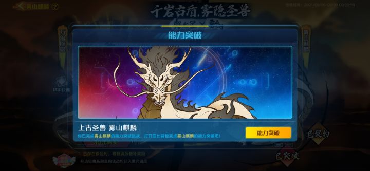 麒麟突破攻略。阵容。绘星诺。加光河。加共工,加羲和。打法。绘星诺开局加盾。光河开局星辉护佑。然后星诺开大打龙。光河接大。然后星诺一直一技能就行。没盾加盾,有大丢大。光河一技能回血加嘲讽。光河被麒麟打死了。换共工,打无冕。共工挂了,换羲和上,打无冕。星诺一直一技能。开大免疫,没盾加盾,注意怒的模式,血量损失过半情况下,可以开怒,一技能回血加双防。