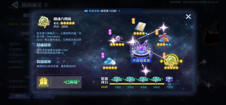 满级源代码和满级八尺镜能增加银河历练周助战次数,手里的自选别留着了,开这俩。 明天周一刷新次数了