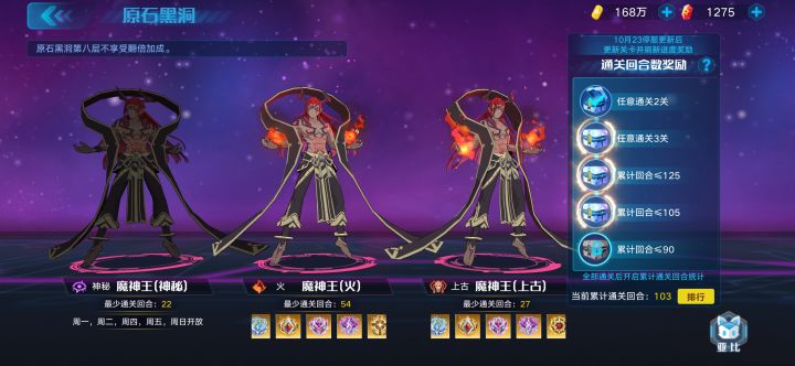 神秘:①132和无冕开局,白泽伤害确实没有无冕实在,无冕还能降防御属性。132必须带走暗皇(俩个大的事情)尽量输出魔神王,132死后 补白泽,白泽配合无冕打输出。注:白泽二技能,无冕三技能均可以抵消魔神王清属哦。132开局容易暴毙得多试试。帝俊输出不一定比132是实在, 物理就无冕白泽,帝俊和132魔攻(魔神王也可以打)上古:目前打法双魔神王,但是特别容易暴毙,推荐卡回合,卡大招回合