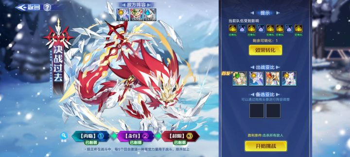 要求:要有超进化路西法,弗莉嘉,打手和抗伤害的(凤凰/二号机/魁炎山/律等等)凤凰既可以当打手也可以用来抗伤害楼主路西法的练度也就是刚开橙书,带的满速修罗和一个0级的神木星灵,练度更高应该能打得更轻松没有路西法怎么办:推荐去看其他大佬的攻略楼主的弗莉嘉也是不是满战天启,带的10级龙血星灵也没有和别人攻略一样刷满魔抗没有凤凰怎么办:可以换成律加二号机,律只在序章和第一关第一节拖回合可能用到