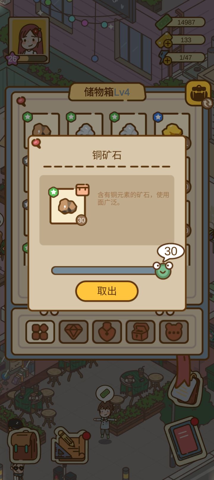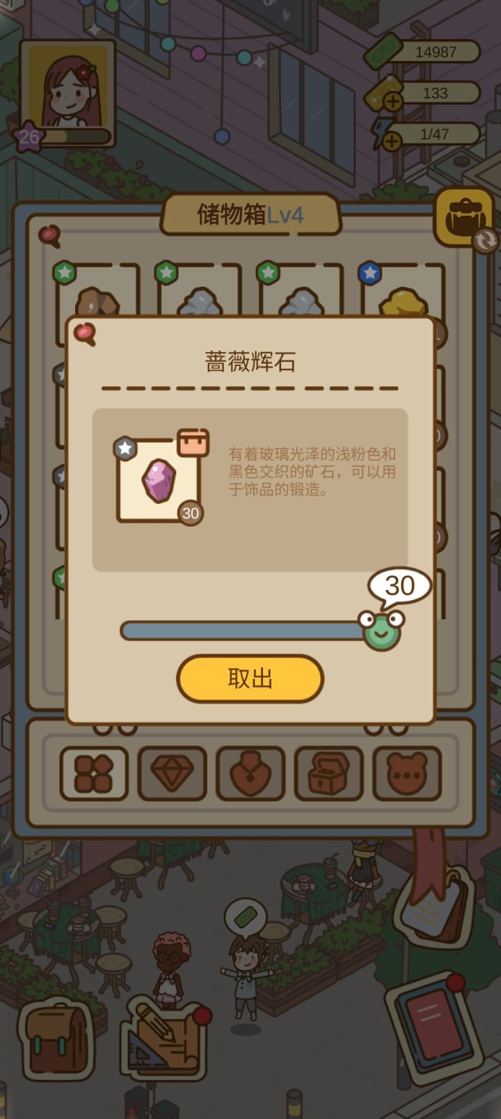 1,铜矿石真滴是基础啊,每一个首饰都需要它(2级开发桌开发的首饰也需要它,一首饰还动不动就6个9个)我挖一个概率好出来3个,不好就1个,基本上2个。且这矿石到25层矿洞后越来越少。2,猫眼石烂大街了!!谁懂啊,还不怎么用。每次挖大概率猫眼石,小概率蔷薇辉石,2个蔷薇辉石都是运气好(大多首饰都需要它),紫水晶概率也低,且需求量还大(动不动一首饰就就6个紫水晶)3,目前家里猫眼石1