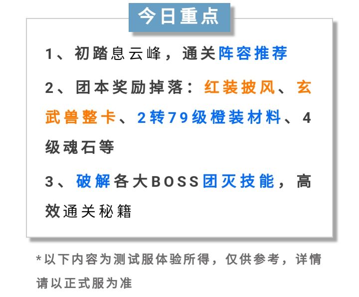 今日,首批开启的服务器等级已到达2转69级,完美大陆也开启了新的团队挑战副本——息云峰,修真者们将迎接更加紧张刺激的新挑战。12人团本难度相对较高,但是机会总是和风险并存,高难度也为修真者带来了丰厚的奖励,下面就和呆毛一起来了解下这个副本的通关攻略吧~副本人数上限12人,等级达到2转69级后可组团进入。根据副本boss特性,呆毛推荐以下两组阵容搭配:> 2妖兽,4羽灵,6输出第一种是常规