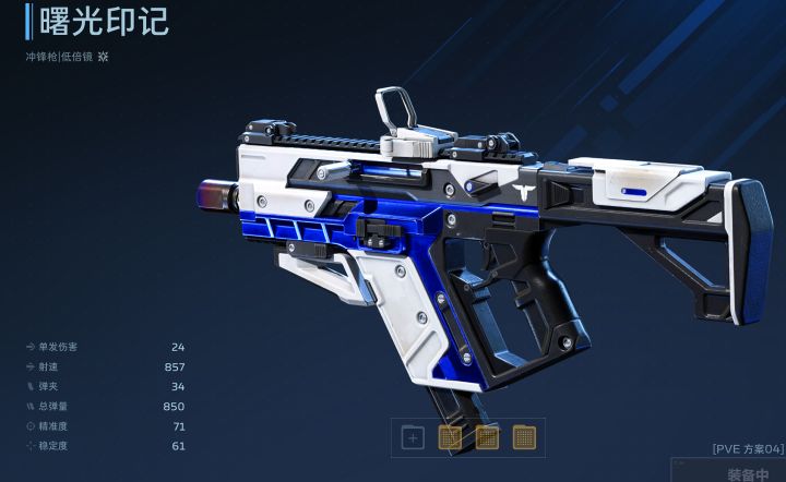 曙光印记这把枪是游戏中的蓝色品质武器,也是人手都有的武器,有些逆行者们问,曙光印记这把枪有没有比较强势的搭配思路,能让这把没有主动技能和被动技能的武器,在僵尸猎场中也能发光发热,有的兄弟,答案是有的,下面进入正题。曙光印记基础介绍数值介绍单发伤害:24射速:857弹夹:34总弹量:850精准度:71稳定度:61数值分析曙光印记拥有极快的射速,缺点是自身的弹夹容量比较低,因此我们