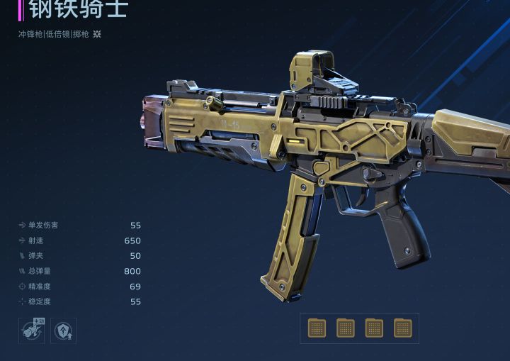 超高射速、大招弹射、超强清怪能力,这就是我们今天的主角钢铁骑士,那么钢铁骑士在游戏中要如何搭配,实战中有哪些技巧呢?下面进入正题。钢铁骑士基础介绍数值介绍单发伤害:55射速:650弹夹:50总弹量:800精准度:69稳定度:55数值分析钢铁骑士依靠自身超快的射速以及主动技能释放后枪械的弹射效果能够让自己在面对怪群时,可以用更快的速度将怪群清理掉,刷金币时,能够起到事半功倍的效果