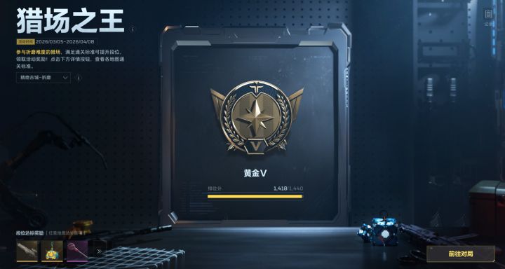 各位逆战未来的玩家们大家好,本次 2026 年 3 月 5 日 - 4 月 8 日开启的“猎场之王”,是《逆战:未来》专为折磨难度猎场打造的段位制专属活动,不仅能白嫖永久金色武器(黄沙风暴)、限定挂饰、限定近战武器等物品,登顶更能解锁传说品质限定称号。本篇攻略从核心机制拆解、最优速刷地图、全流程枪械配置全维度覆盖,帮你用最少的时间稳冲王者段位,拿满全档位奖励。一、活动核心规则全拆解(1)活动