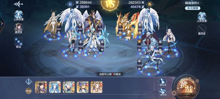 暴怒之战这里有两种打法,一种是三光一极队开局,一种是三水一极队开局。水队相对来说过渡会比较平滑一点,光队打前面的小关会有点困难,这里我就展示水队开局的。开局老样子,三水一极,带个天妈吃【加气】BUFF。光队的话就在神启诺亚,极耀龙,次元龙和一些肉盾之间选择,因为没有诺亚选,所以光队开局是没有英雄技的,所以比较难。木龙这里上三个精灵就够了,多一个都会溢出伤害。星格这里用这个站位,不用极。精灵