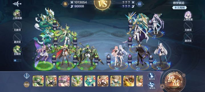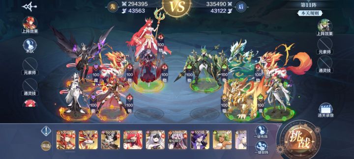 命运.梵天英雄技:以梵天为核心,上阵包括梵天的精灵就可以开启英雄技,开局先出手的精灵满气势,己阵精灵每次出手前给自己添加生命值8%的护盾(3回合)。优势是开局给己阵先出手的精灵开大,可以看情况选择不同先出手的英雄精灵,从而开局打出优势;劣势是容易被联动性很强的队伍打散,毕竟这个阵容开局只有梵天开大,剩下的都只是单纯的普攻。阵容组合:以梵天为核心,帝一鸣为召唤师。前排比较常见的就是直接梵天加帝一