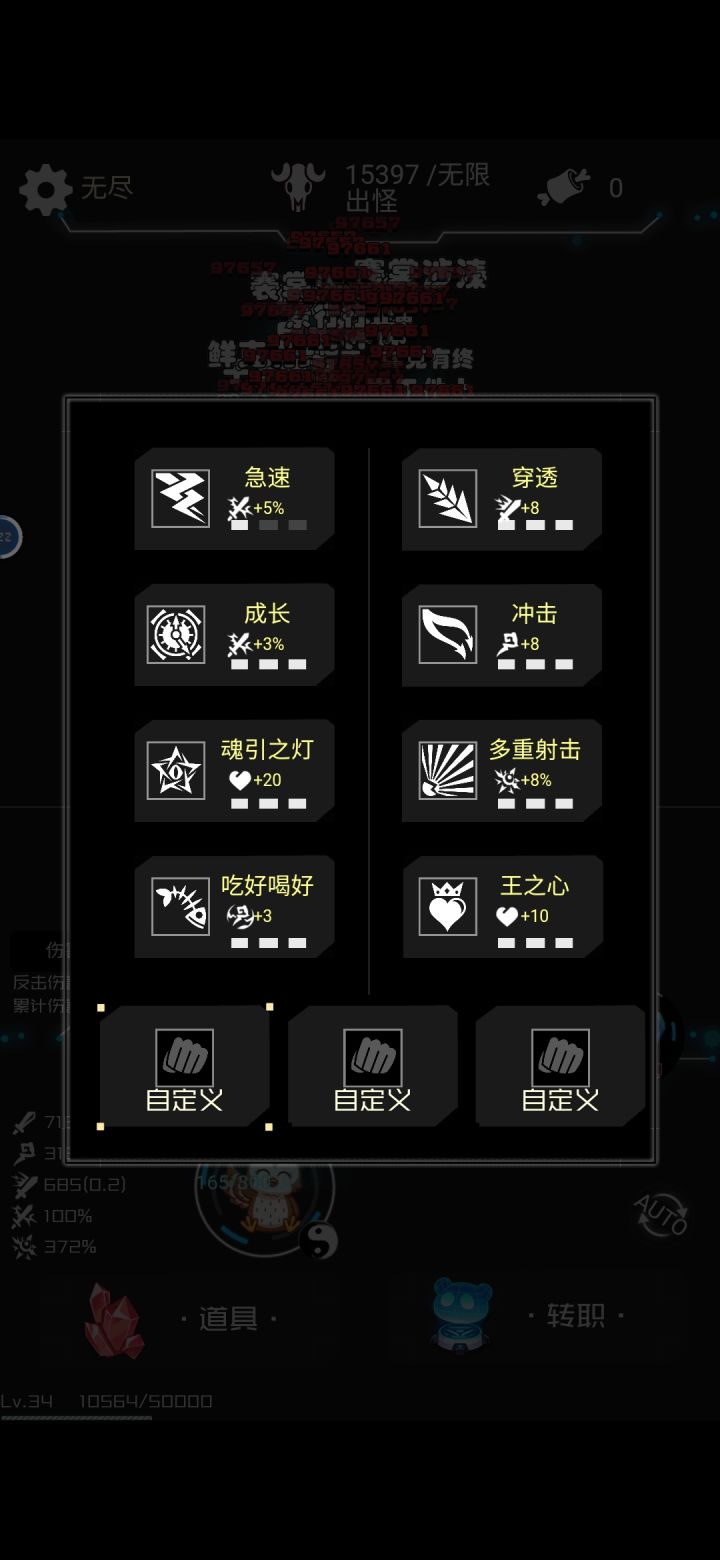 这个模式,是采用了类似于波次的玩法每个回合都会出一批怪物,而怎么尽可能快的去把怪物击杀,将是很大的一个考验击杀的越快,你将获得更多的经验和大肉块,用于强化自身的实力关于经验和肉块,就不在这里说了这里提一句:如果需要刷更多的钻石和金币,可以选择这个模式因为怪物杀完就出,会比较快!这也是之前玩家测试过程中总结出来的经验~#攻略