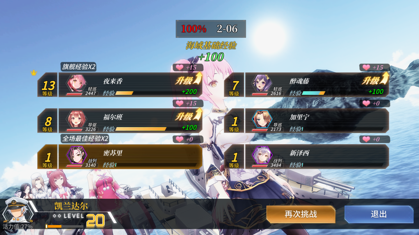 为什么我这边通关后,有一些不加经验?上图已经刷了好几遍关卡了,前三个都加经验加里宁,密苏里和新泽西