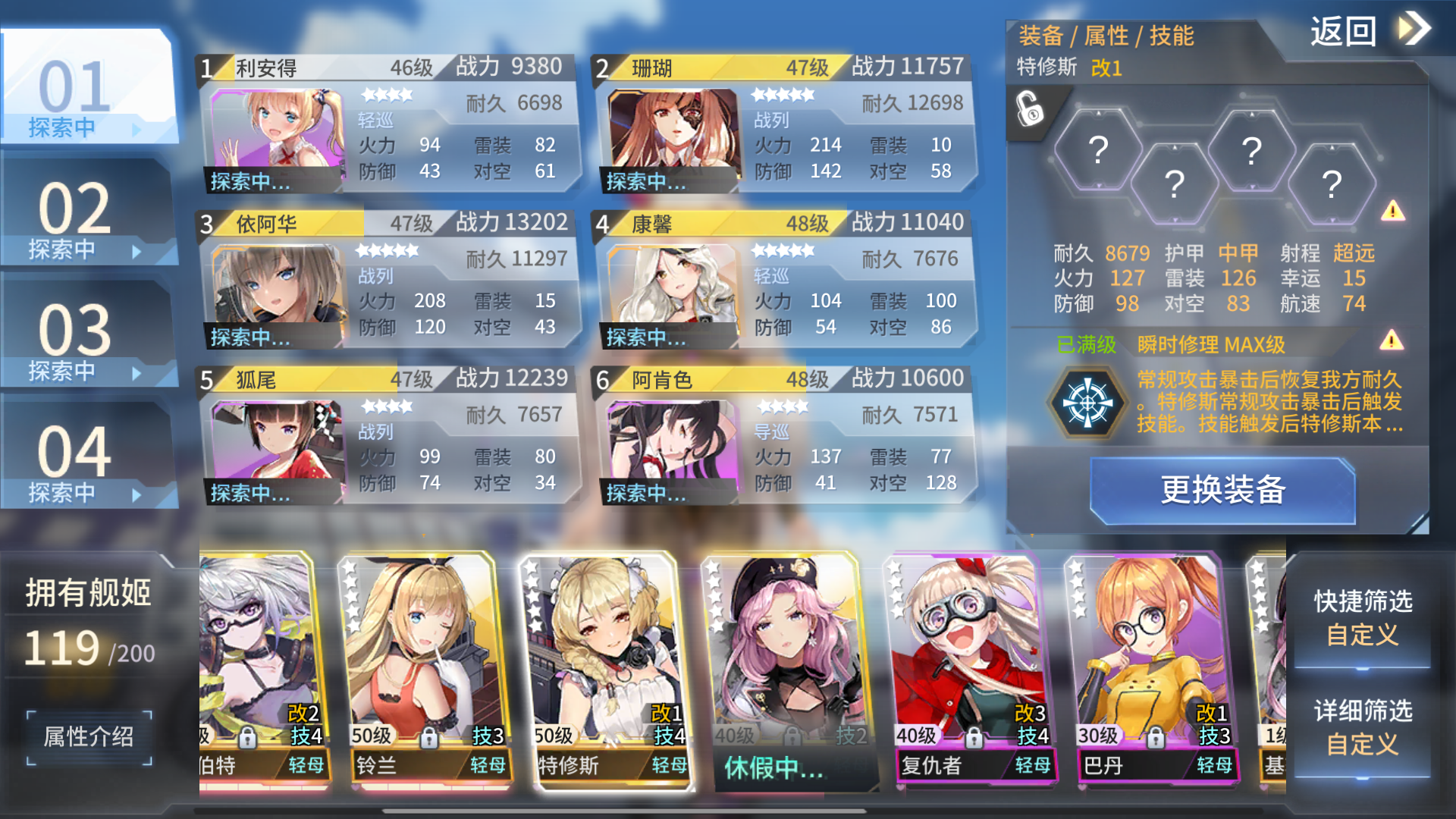 舰姬强化里面独角兽跟50级特修斯怎么不见了?
