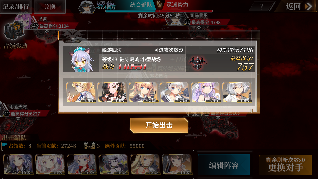 12点前势力战平均分数4万来分,总积分比敌方少几百万,刚努力撸完了极限积分一看,特么的总积分少了千万,平均积分也少了一半....特么的这势力战到底有多水.