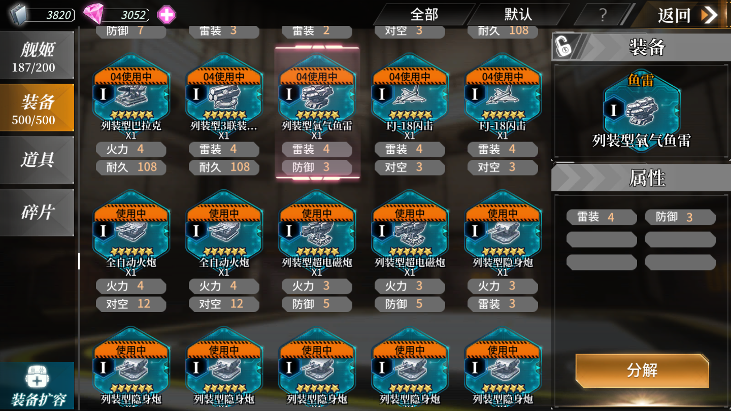 建议,已给舰姬装备上的设备别计算到仓库储存数量上