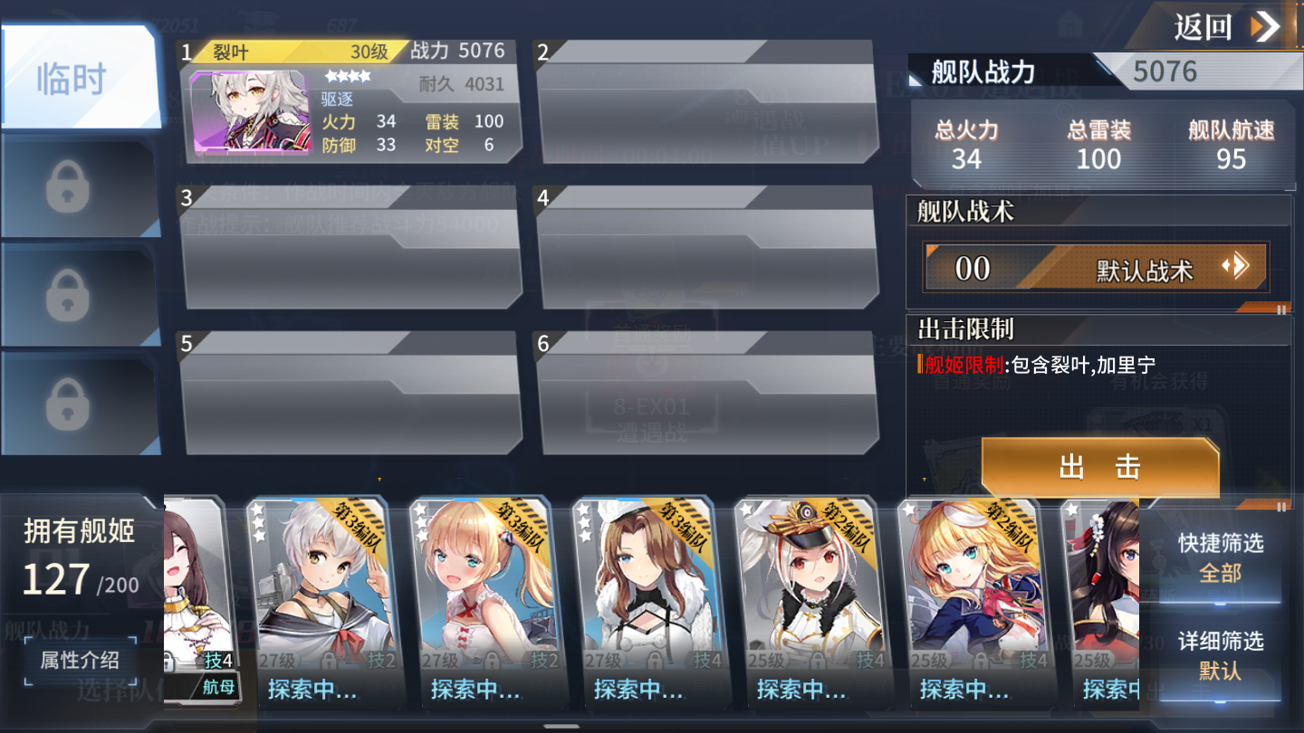 演习里放置的队伍装备能设置成锁定嘛,我一打别的配个队拆几下,肝完回来看演习哦豁掉了1000,装备都没穿呢,谁没事跑去看演习啊,或许会说方便灵活调换,但弄个可锁可不锁我觉得还行,说到底还是前期装备少,队伍没成型,本人开始主练的战列,后边兼修航母和驱逐,深渊入侵里航母漩涡啥的,最后两关战列也比较猛,就要调换,势力战遇到航母也要调驱逐啥的(=゚Д゚=),副炮等装备换来换去又不能兼顾演习,不能说22.00