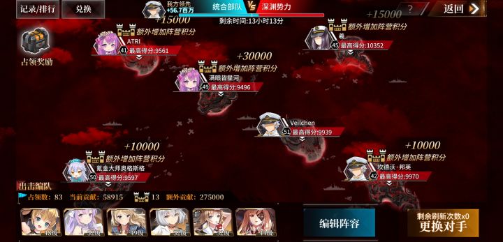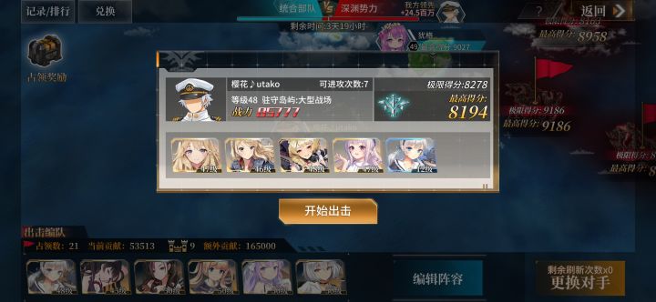 势力战遇到对面这个,还以为是好心人整了个福利队,直到我第一轮超重弹命中后发现依旧被对面甩在超远的距离才发现不对劲。后面换了航母大队带了四个战斗机结果制空权劣势,空袭完全被对面躲过。最后tm第三把火了整了四轻母五个战斗机靠开局打死对面驱逐把自己补满血赢了,简直了,恶心得不行