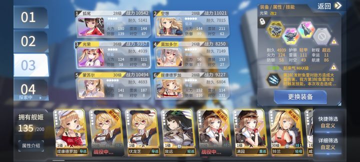 大家好!本帖主要是为了向新手玩家介绍和解析一下本游戏的编队和战斗系统!由于是个人整理,难免会有失误,如果有小伙伴发现,欢迎批评指正!一、舰娘编队随着游戏主线推进和指挥官等级成长,会逐渐开放三个编队,总计四个编队。应为关卡和活动需要,个人建议最好按顺序组建炮击队、鱼雷队、空袭队和混编技能队。1、 炮击队是第一支舰队,主要是这个游戏前期用炮击队最好打,也最好组成!炮击队的组成成员是:导驱、轻巡、