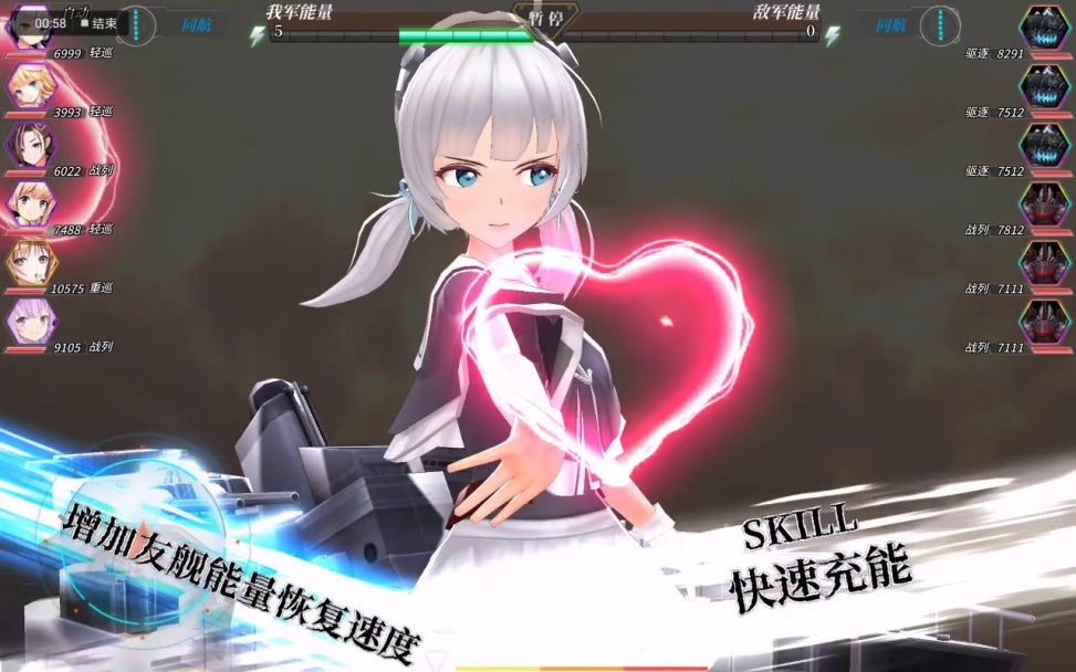 上一篇开荒攻略写出来,发现很多人不知道多巡是什么也不知道怎么样最合适,今天开个攻略讲一下首先解释一下什么是多巡当你发起进攻的时候,你会进入连击状态,当你处于连击的时候,对方是不能攻击的,你在连击中的每一次攻击(鱼雷,主炮,空袭,ps:副炮不算),都算作一巡,七巡就是一次连击中发动了七次进攻在作战界面中,上方会显示能量(绿色格子)和连击时间(绿色格子上面的黄条)其实在我们的连击也会显示第几轮